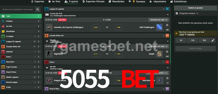 O 5055 Bet oferece uma grande seleção de opções de apostas em e-sports com probabilidades competitivas